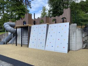 Midt i Stavanger har vi levert et unikt lekeområde som kombinerer spennende klatreopplevelser med rollelek, ballspill og kreative elementer. Et område som innbyr til både aktivitet og fantasi.